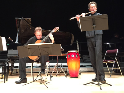 Les tangos de Piazzola, "La muerte del Angel" pour violon, violoncelle et piano et "L'histoire du tango", pour flûte et clarinette, ainsi que l'impressionnant tango de Thierry Pécou, "Quelqu'un parle au tango: ...", constituaient le fil rouge du concert. En contrepoint, le public a pu entendre "Manoa", de Thierry Pécou pour flûte, clarinette basse et violoncelle, pièce d'un exotisme envoûtant, la transe pour violoncelle et piano préparé "Habil Sayagi", de la célèbre compositrice azéri Franghiz Ali-Zadeh, ainsi que la joyeuse et poétique "Courante" de Claire Mélanie Sinnhuber, pour flûte, clarinette, guitare, alto et violoncelle.